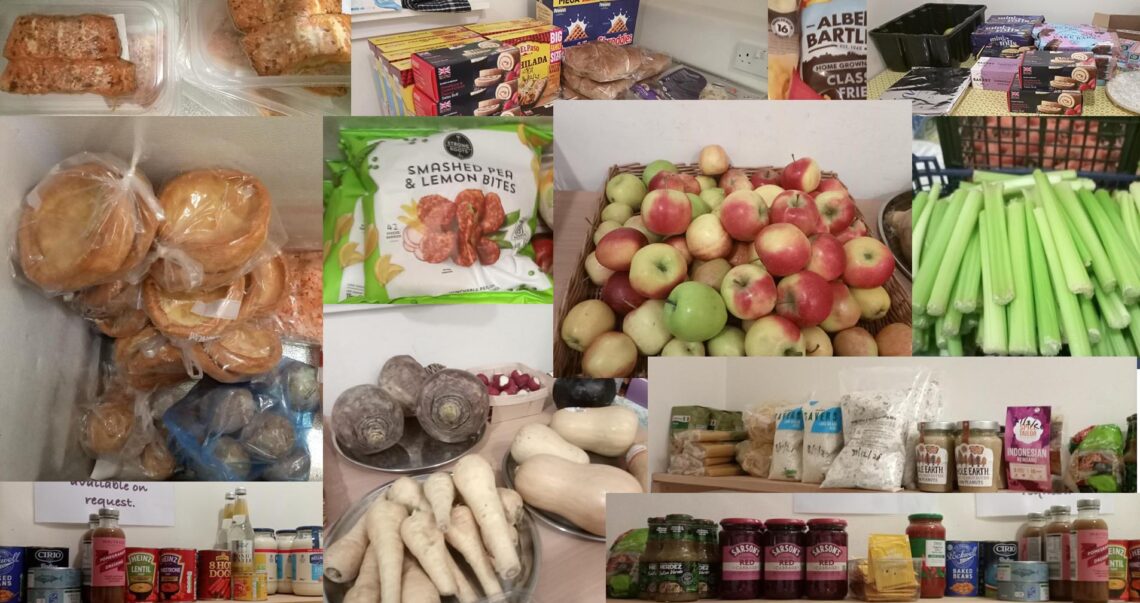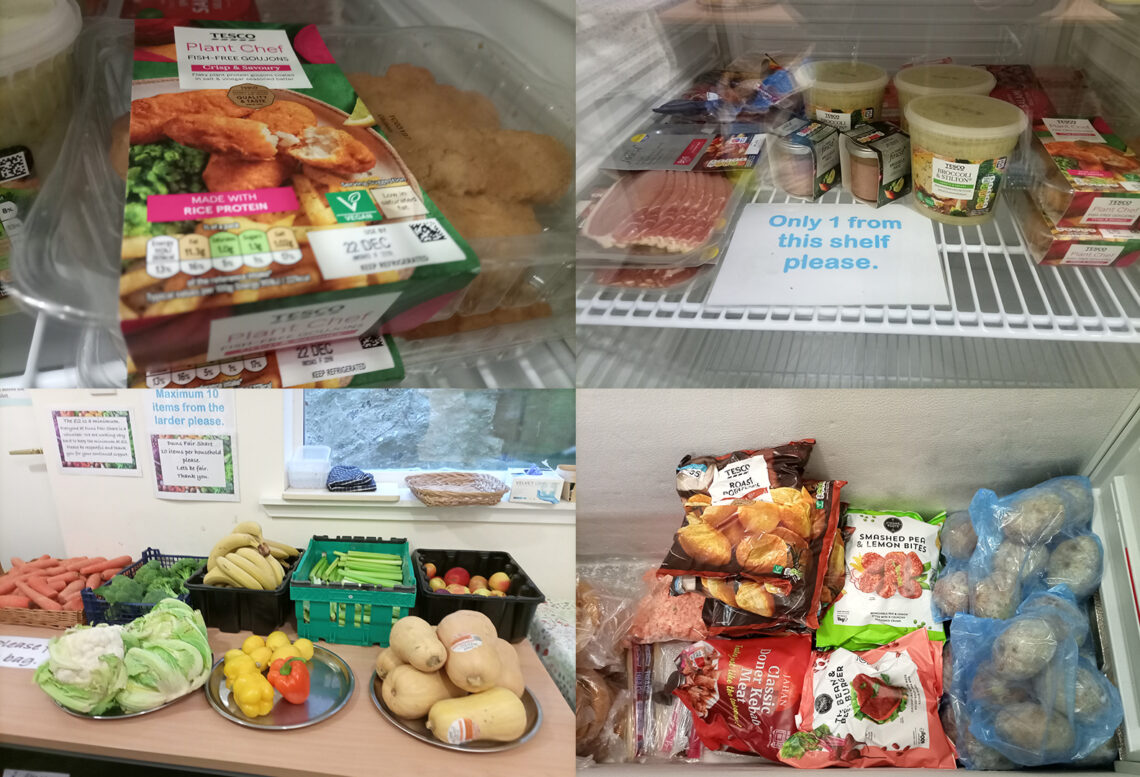 In the larder this week we have a few products we have not had before. For those that love a roast potato we have a good number of them in the freezer. Along with that we have some veggie burgers that look very tasty and smashing salmon fillets. Our Fruit and vegetable selection will keep our veg lovers happy, the broccoli looks amazing. There is a few kiwis, grapes, plenty apples, cabbages, carrots, potatoes, brussel sprouts, swedes and a big tray of bananas. Last week we managed to save so many bananas going to waste, can we do it again. On our shelfs we still have some lovely pasta, tonic…